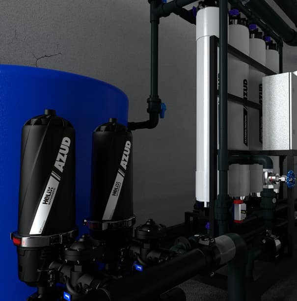 Nuestro exclusivo equipo de filtración de discos autolimpiante AZUD HELIX AUTOMATIC garantiza la protección, durabilidad y óptimo rendimiento de las tecnologías aguas abajo del equipo.