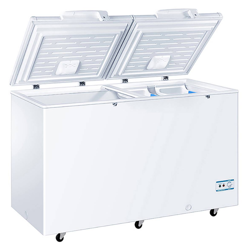 Este congelador horizontal de capacidad de 430 litros cuenta con ruedas en la parte inferior, las cuales facilitan su desplazamiento a todas partes. Viene también con doble chapa de seguridad y un empaque magnético removible que facilita su limpieza en la parte interior.