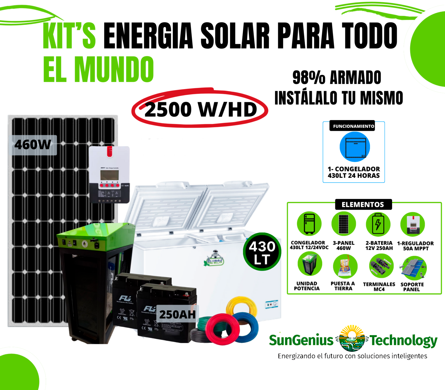 Este congelador de 430 litros cuenta con un diseño versátil y eficiente que permitirá aprovechar al máximo el espacio disponible, garantizando una conservación adecuada de tus productos congelados. Autonomía o respaldo para 2 días sin sol. 2500W/HD.